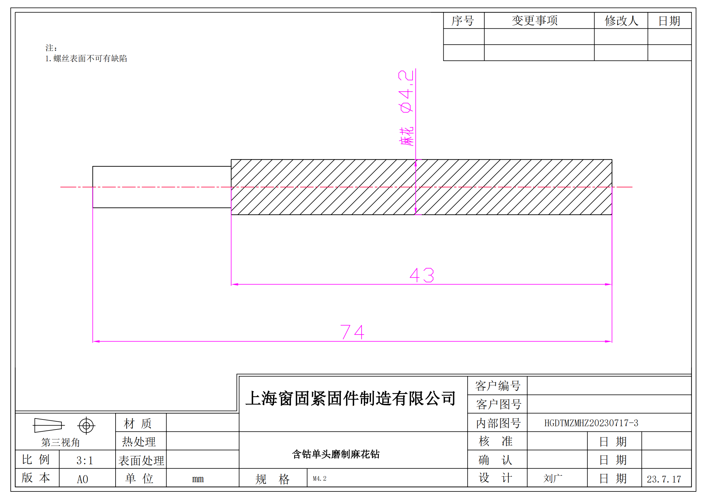 含钴单头磨制麻花钻4.2