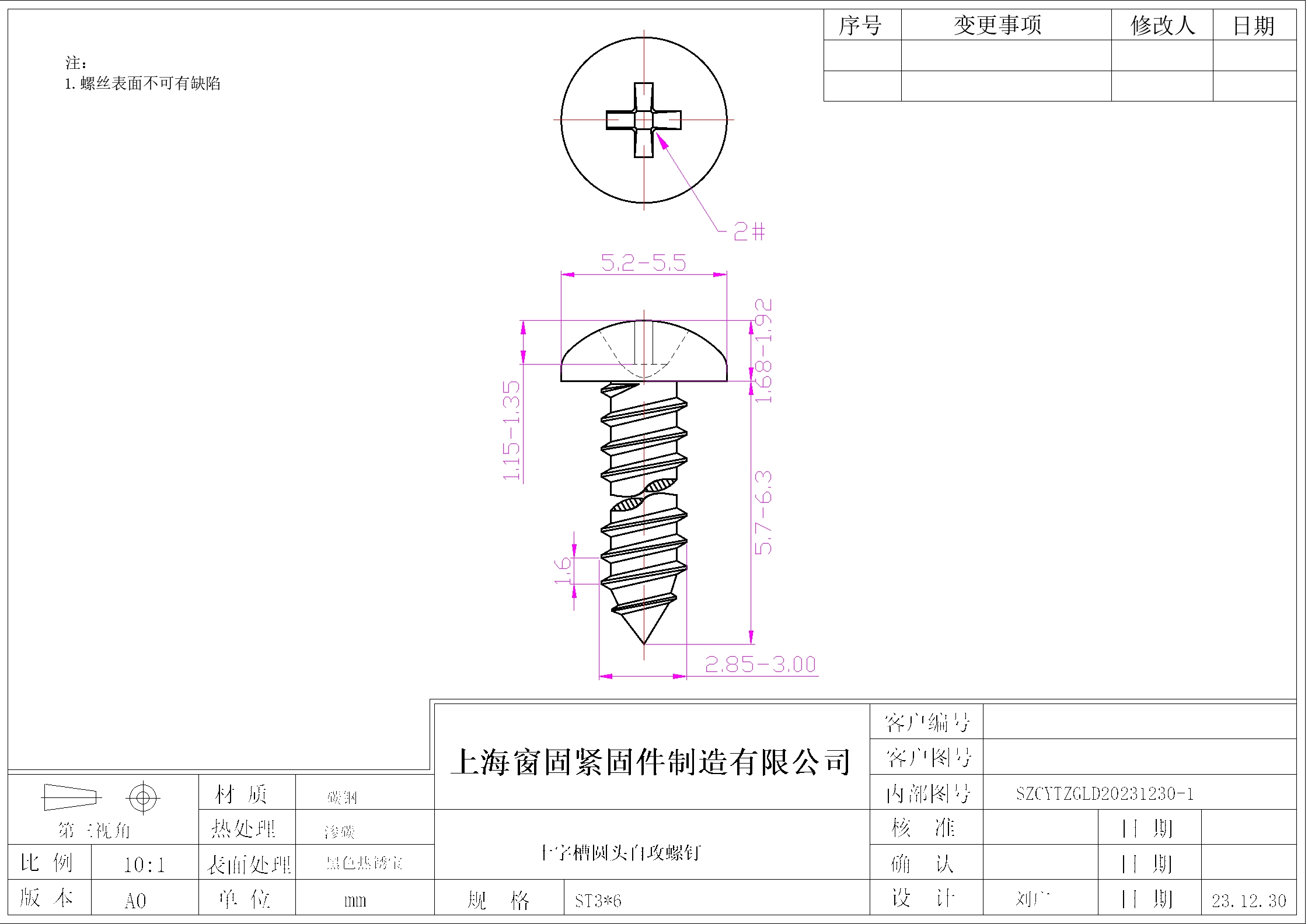 十字圆头自攻螺钉~3*6~黑色热锈宝