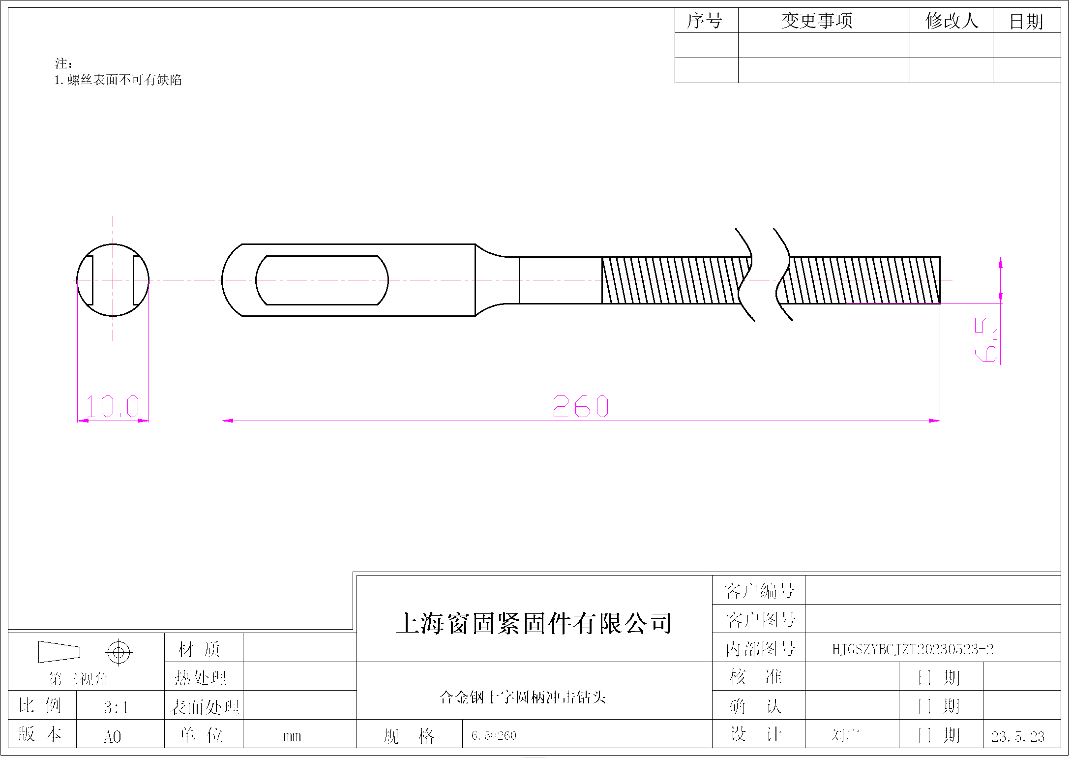 梅花沉头带筋细牙束尾自钻自攻螺钉