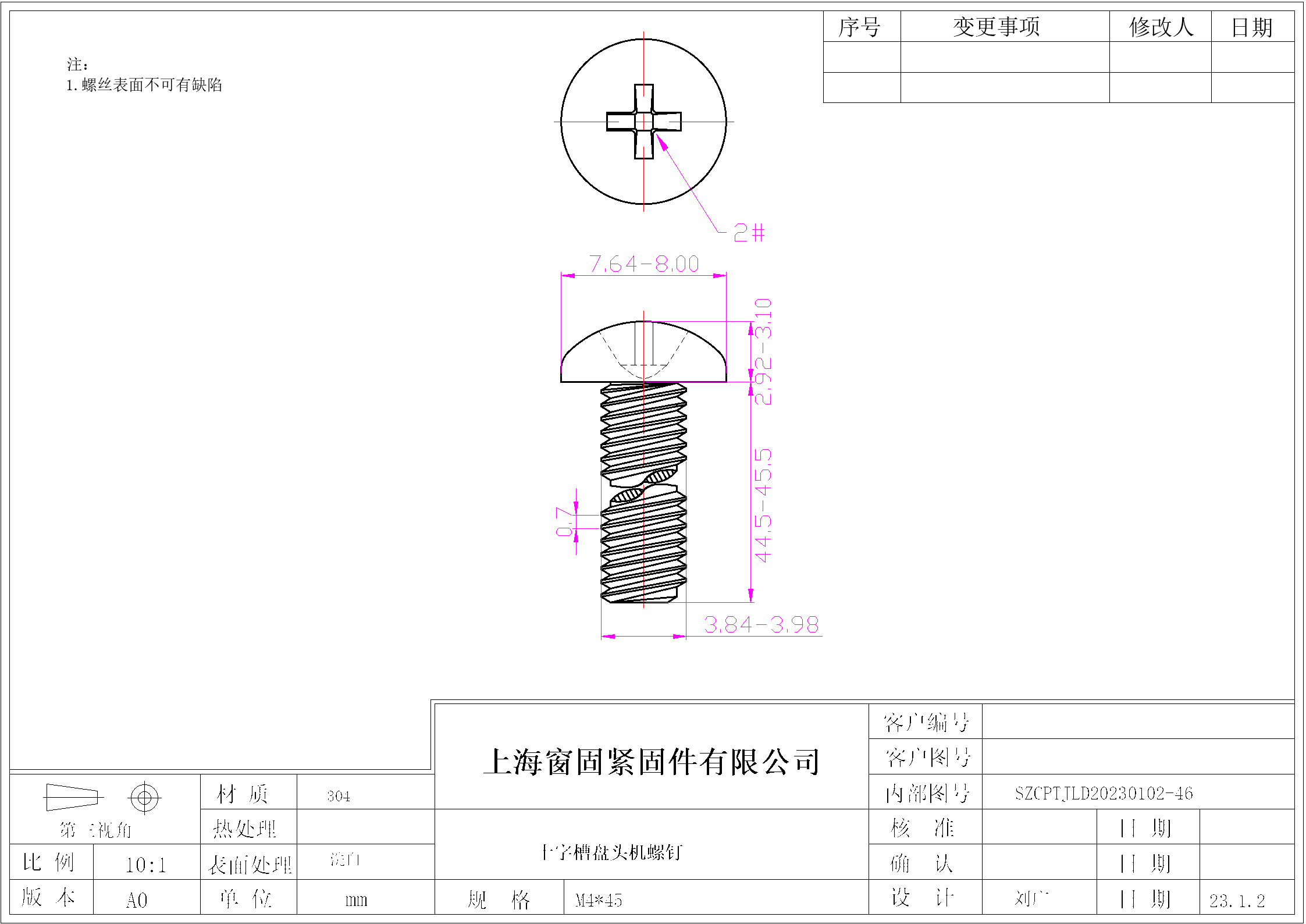 不锈钢304十字盘头机螺钉~4*45~洗白