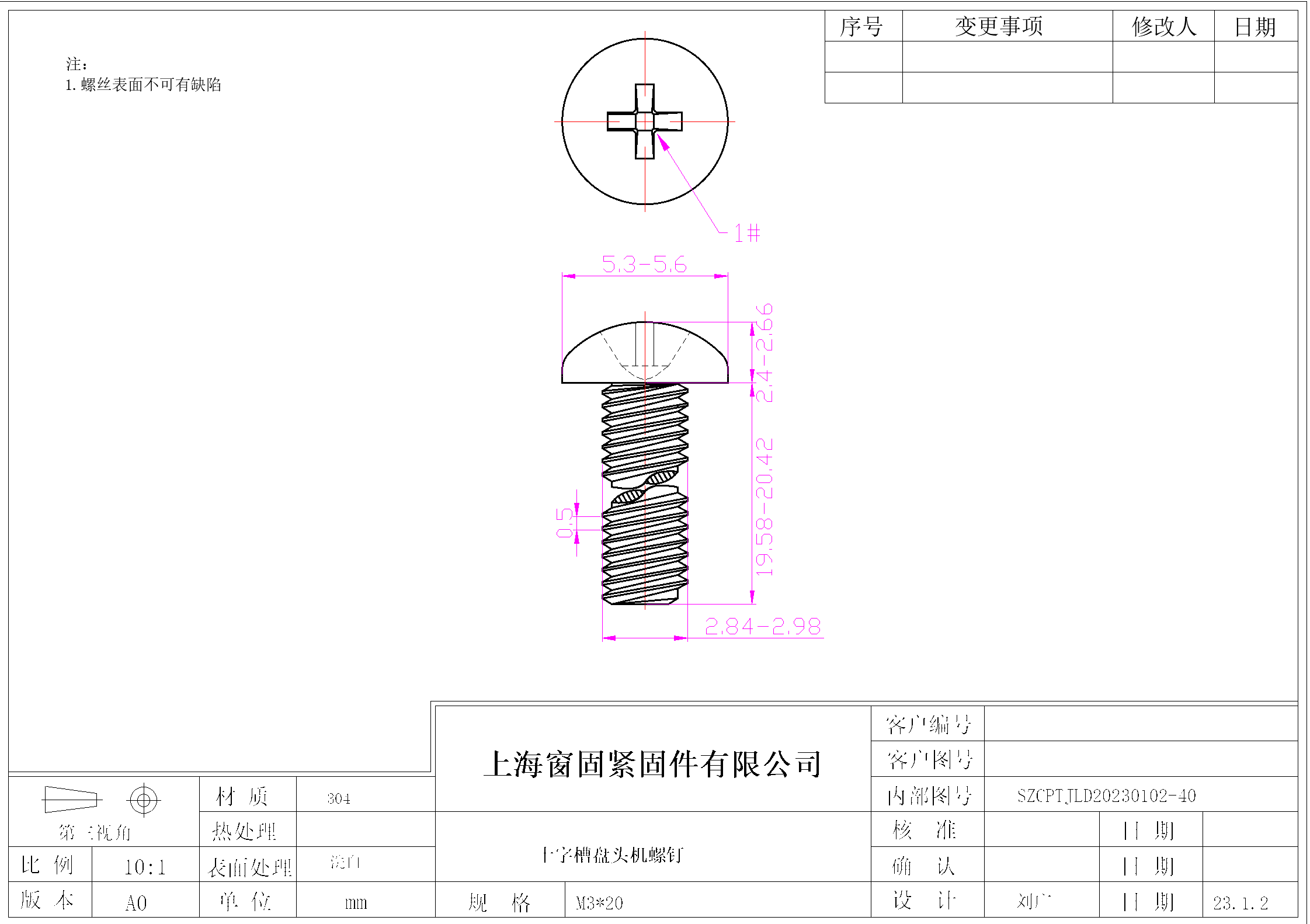 不锈钢304十字盘头机螺钉~3*20~洗白