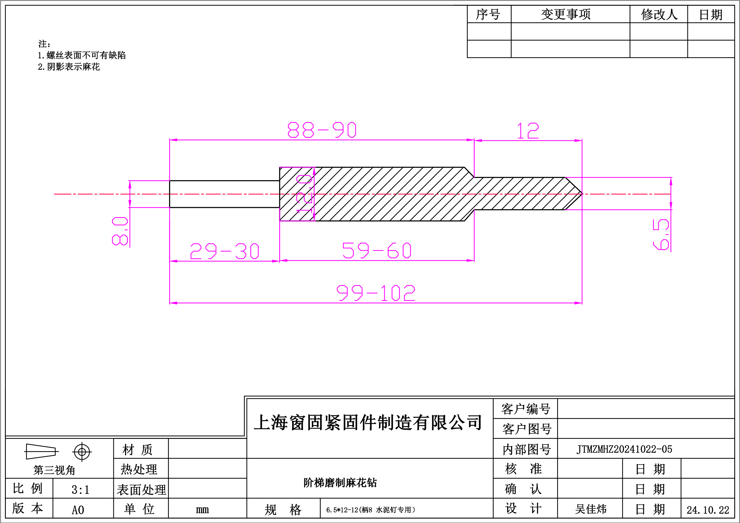 阶梯磨制麻花钻~6.5*12-12~镀钛~(柄8,水泥钉专用)