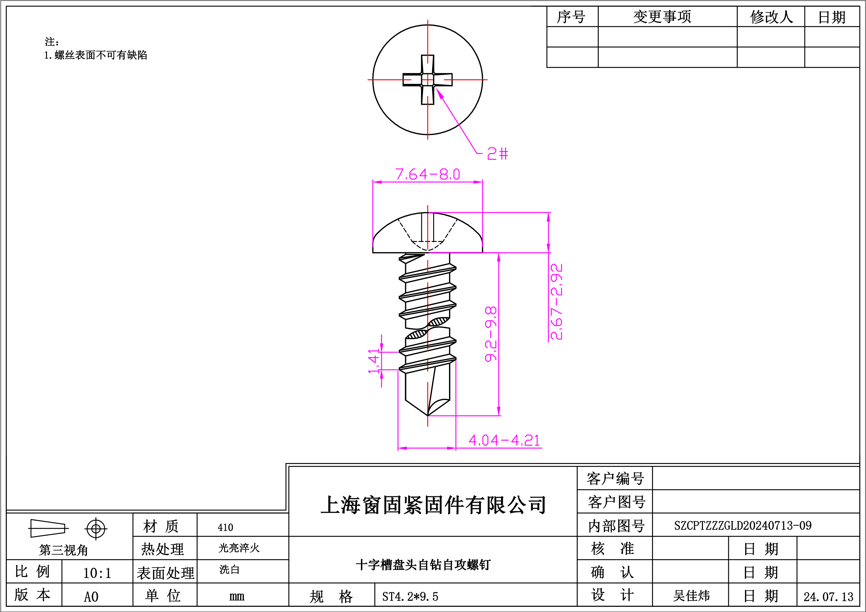 不锈钢410十字盘头自钻自攻螺钉~4.2*9.5~洗白