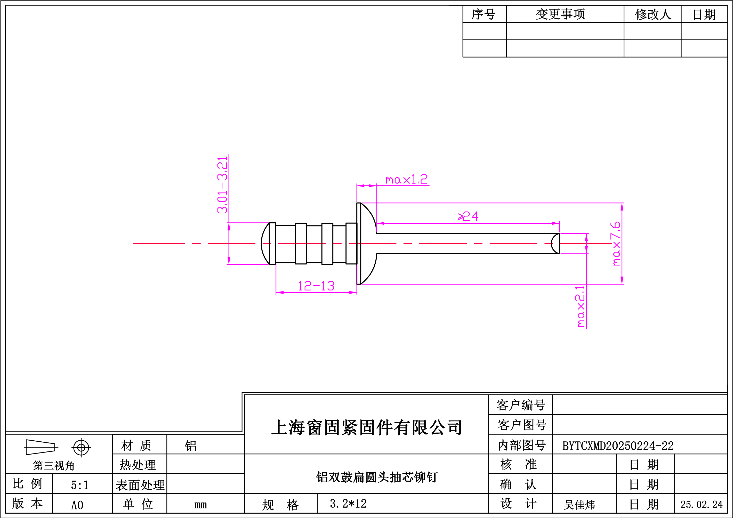铝双鼓扁圆头抽芯铆钉~3.2*12
