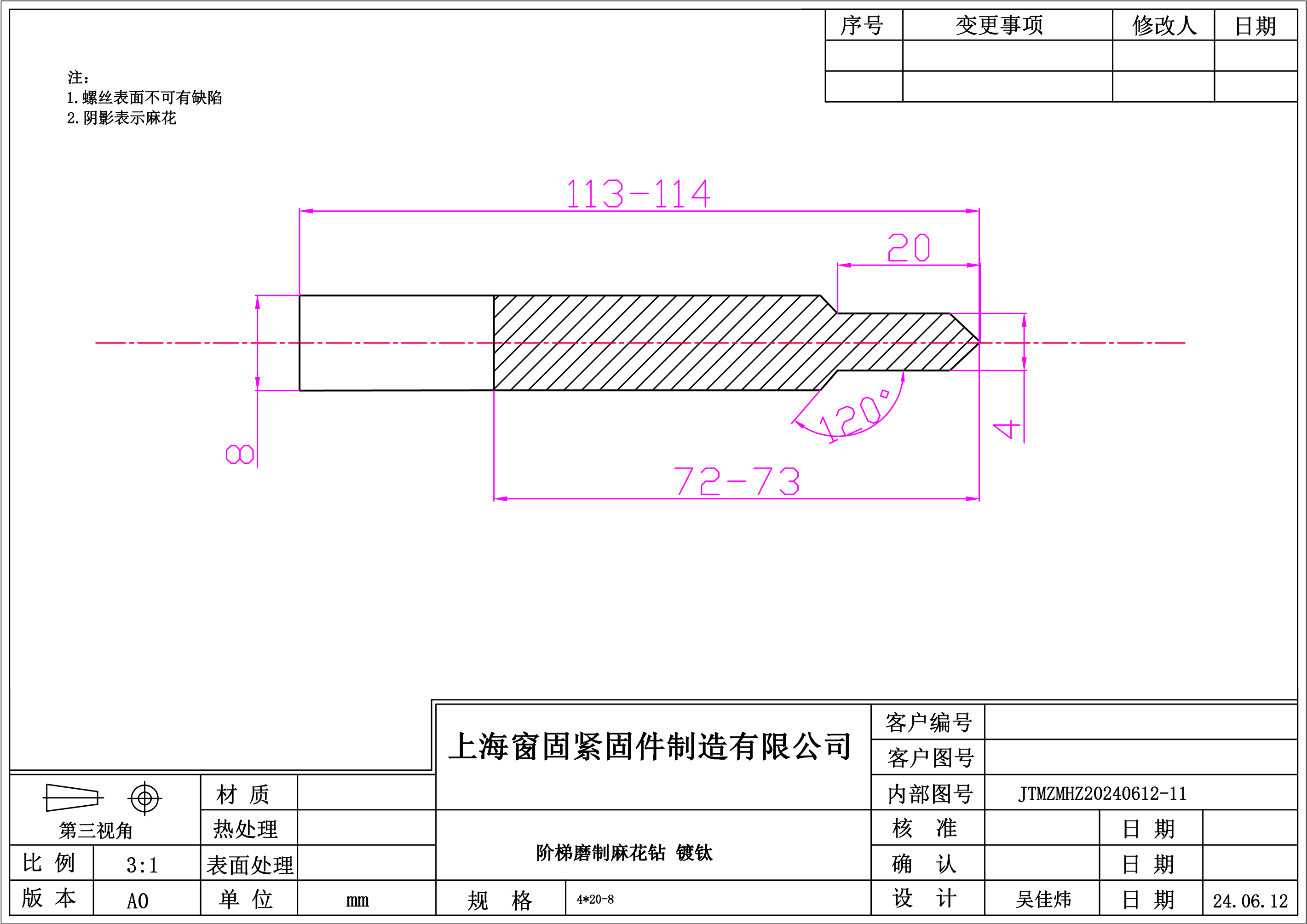 十字沉头带筋细牙束尾自钻自攻螺钉
