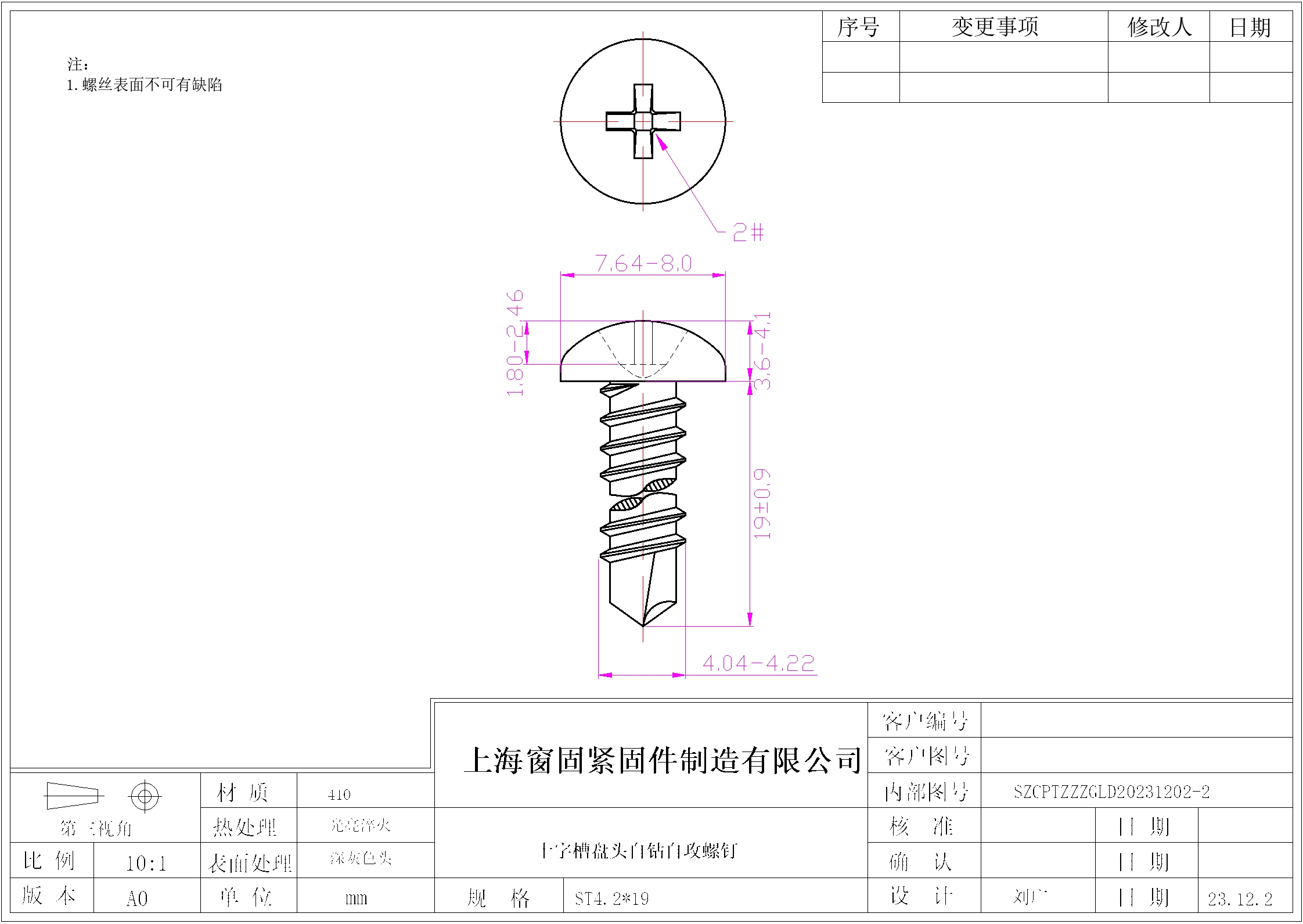 不锈钢410十字盘头自钻自攻螺钉~4.2*19~喷深灰色头