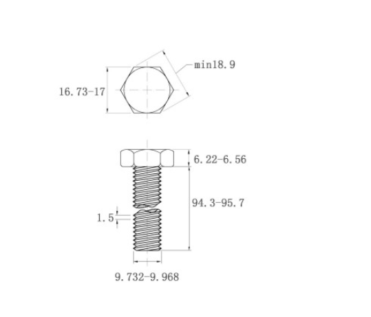 不锈钢304六角头螺栓~10*95~洗白