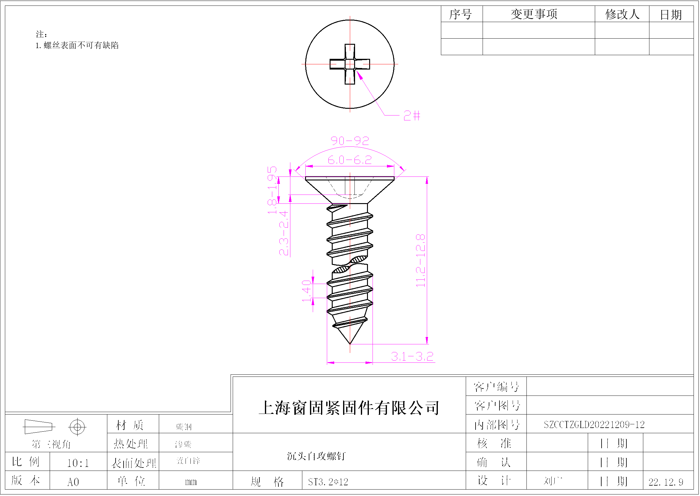 十字沉头自攻螺钉~3.2*12~蓝白锌