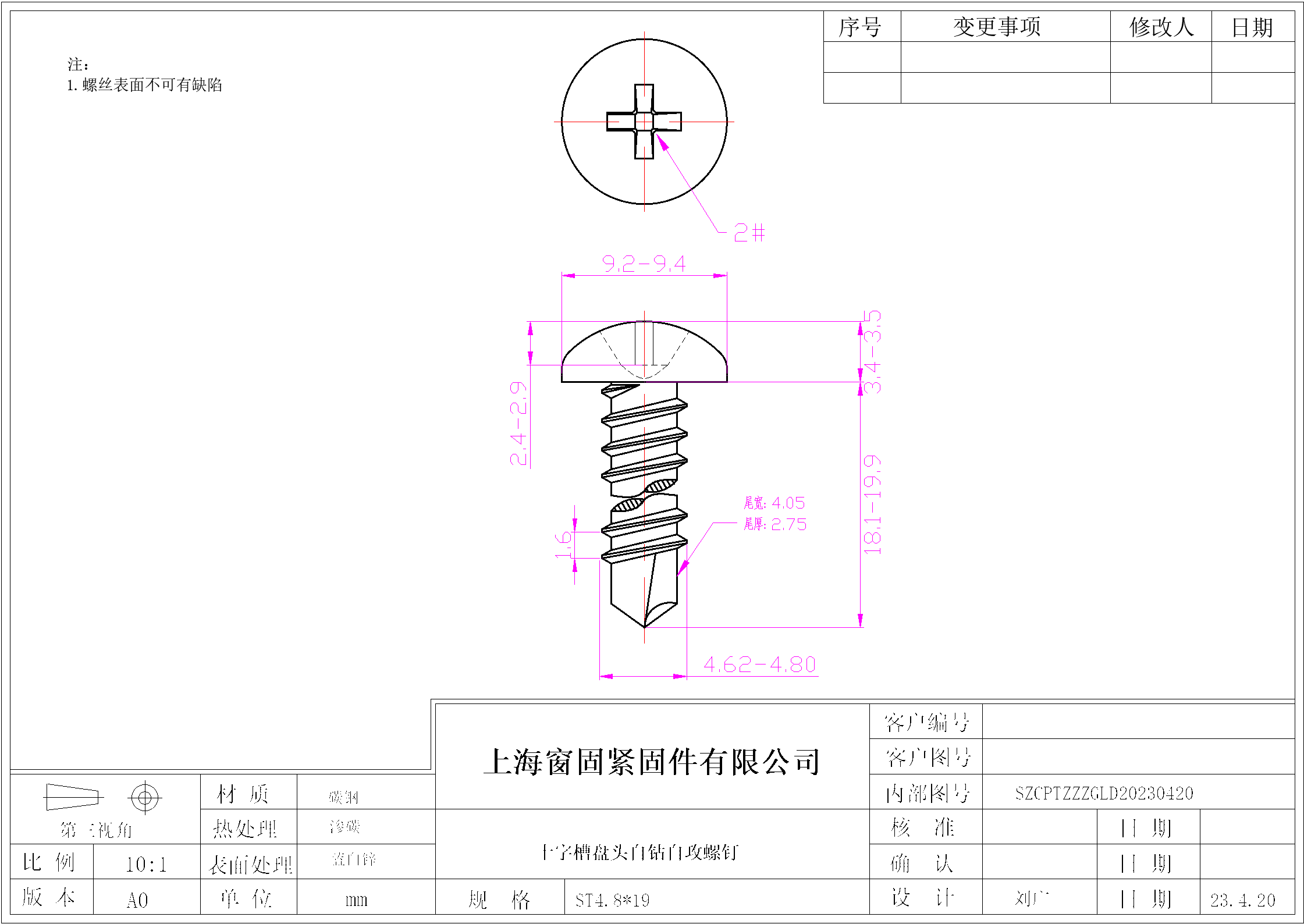 十字盘头自钻自攻螺钉~4.8*19~蓝白锌