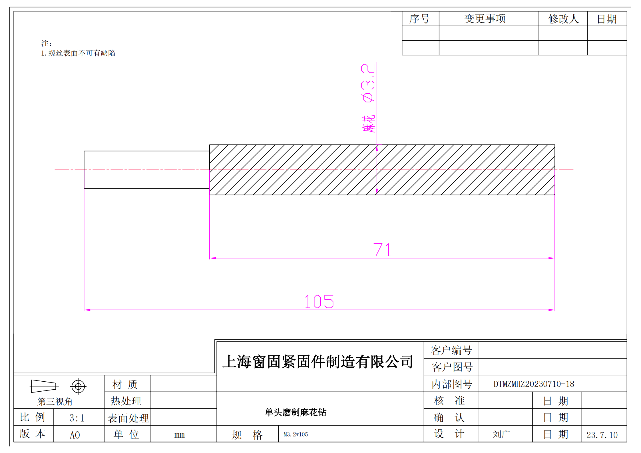 单头磨制麻花钻~3.2*105