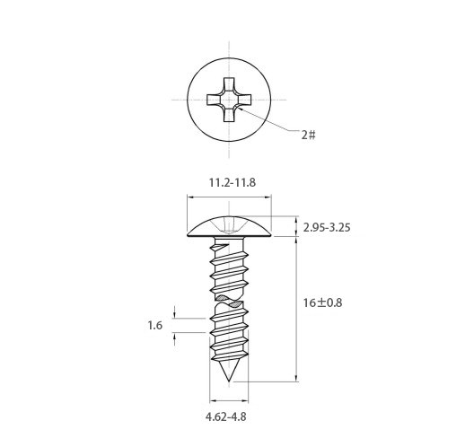 不锈钢410十字大扁头自攻螺钉~4.8*16~洗白