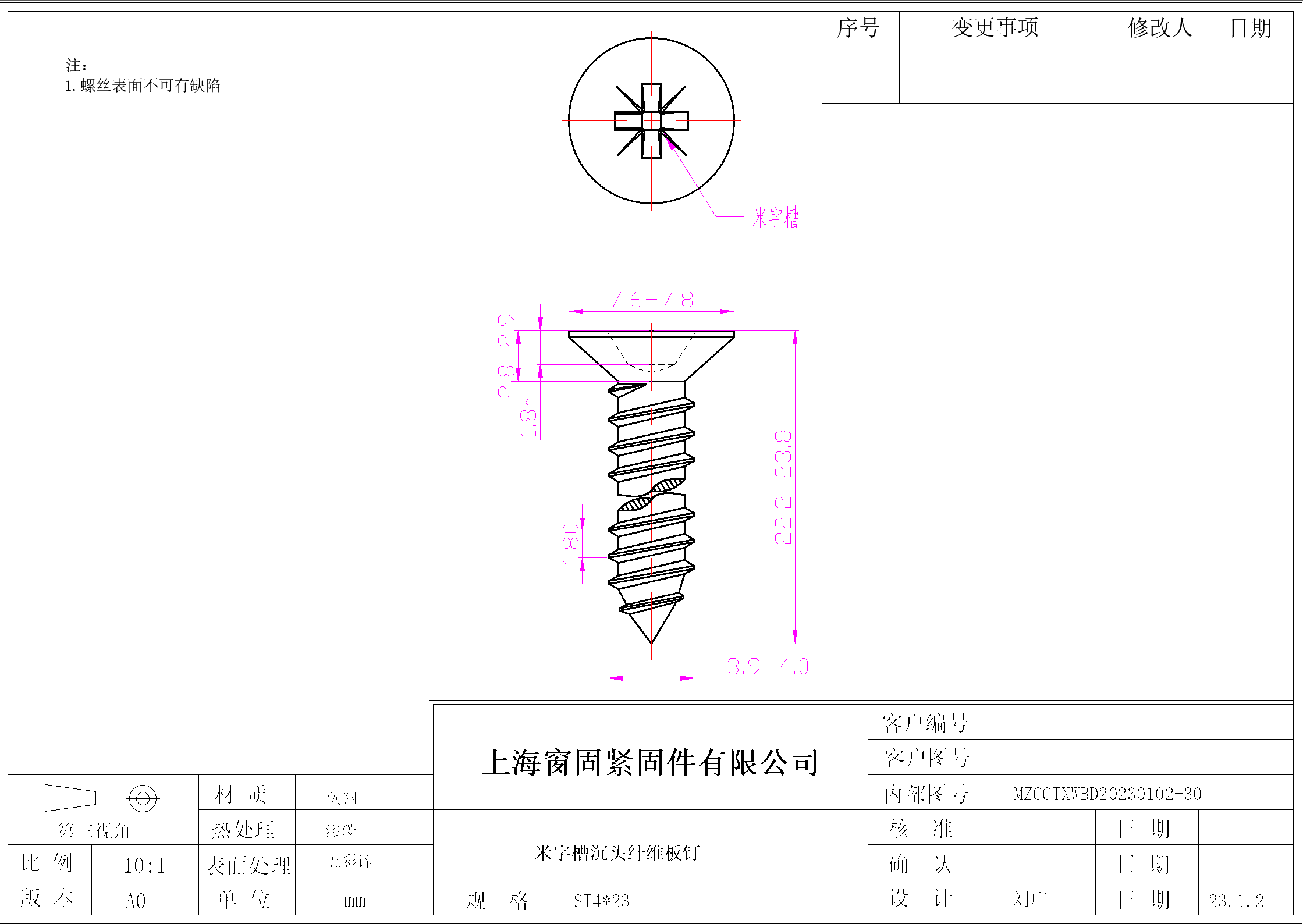 米字沉头纤维板钉~4*23~五彩锌