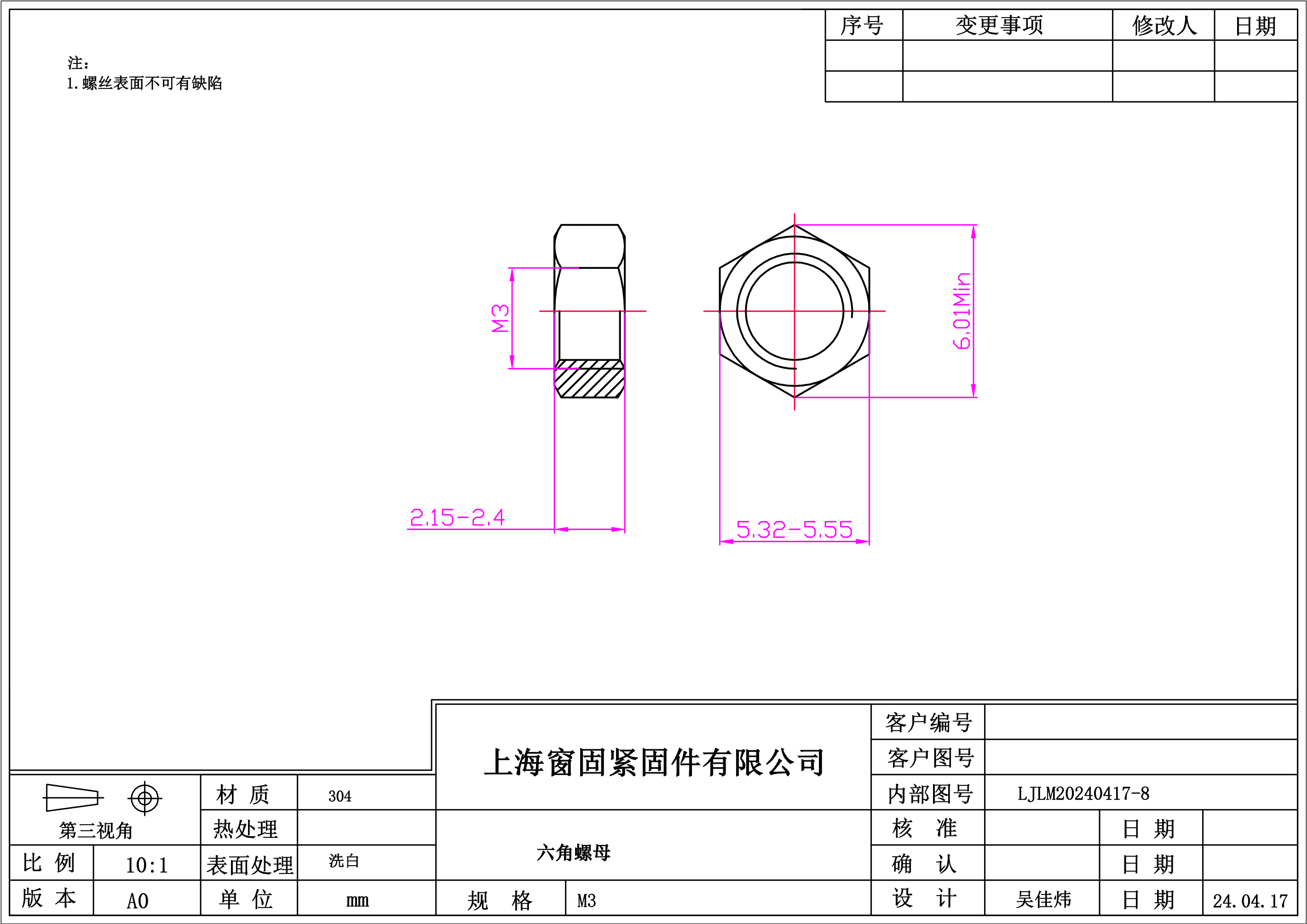 不锈钢304六角螺母3~洗白