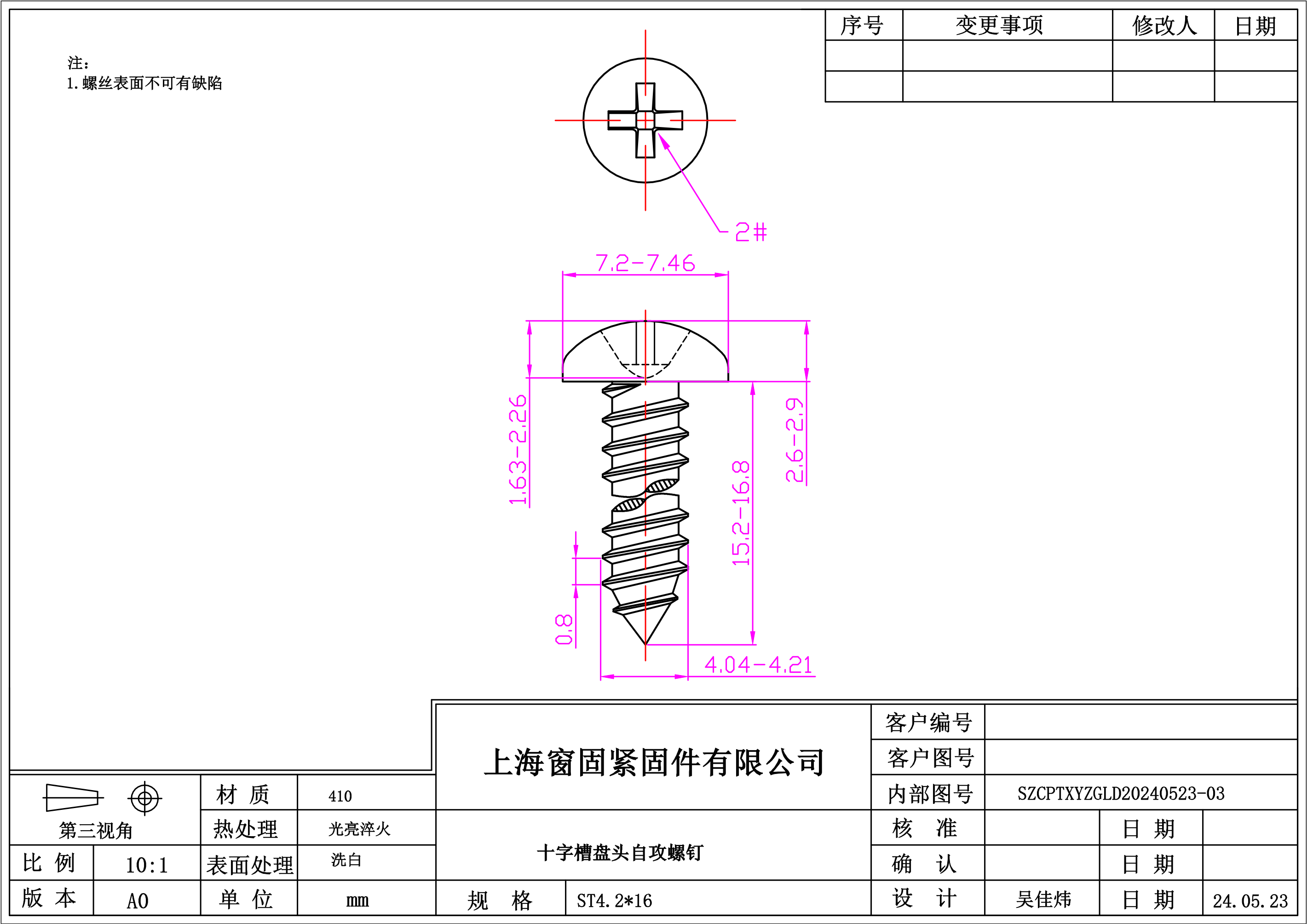 不锈钢410十字盘头细牙自攻螺钉~4.2*16~洗白