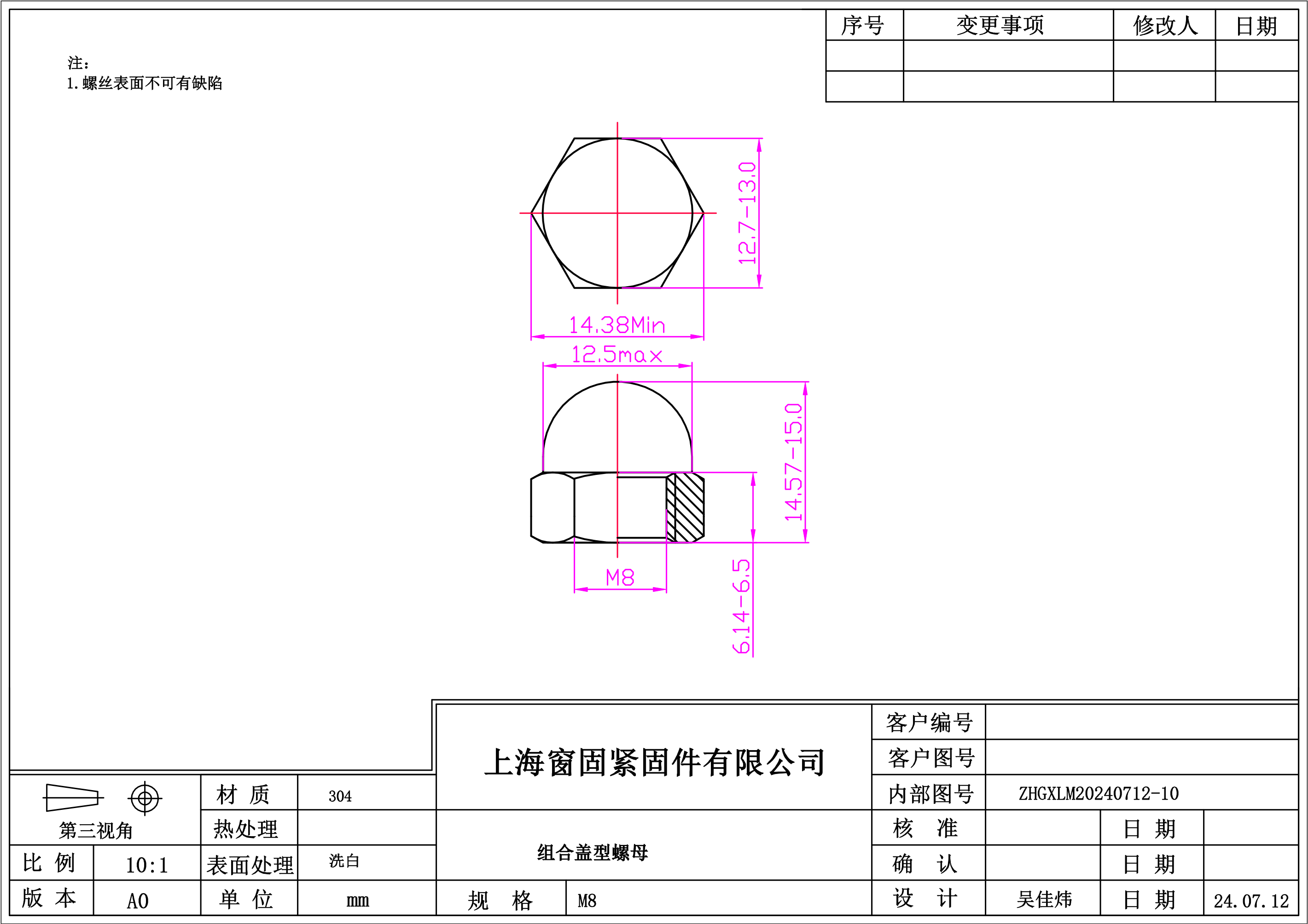 不锈钢304组合盖型螺母8~洗白
