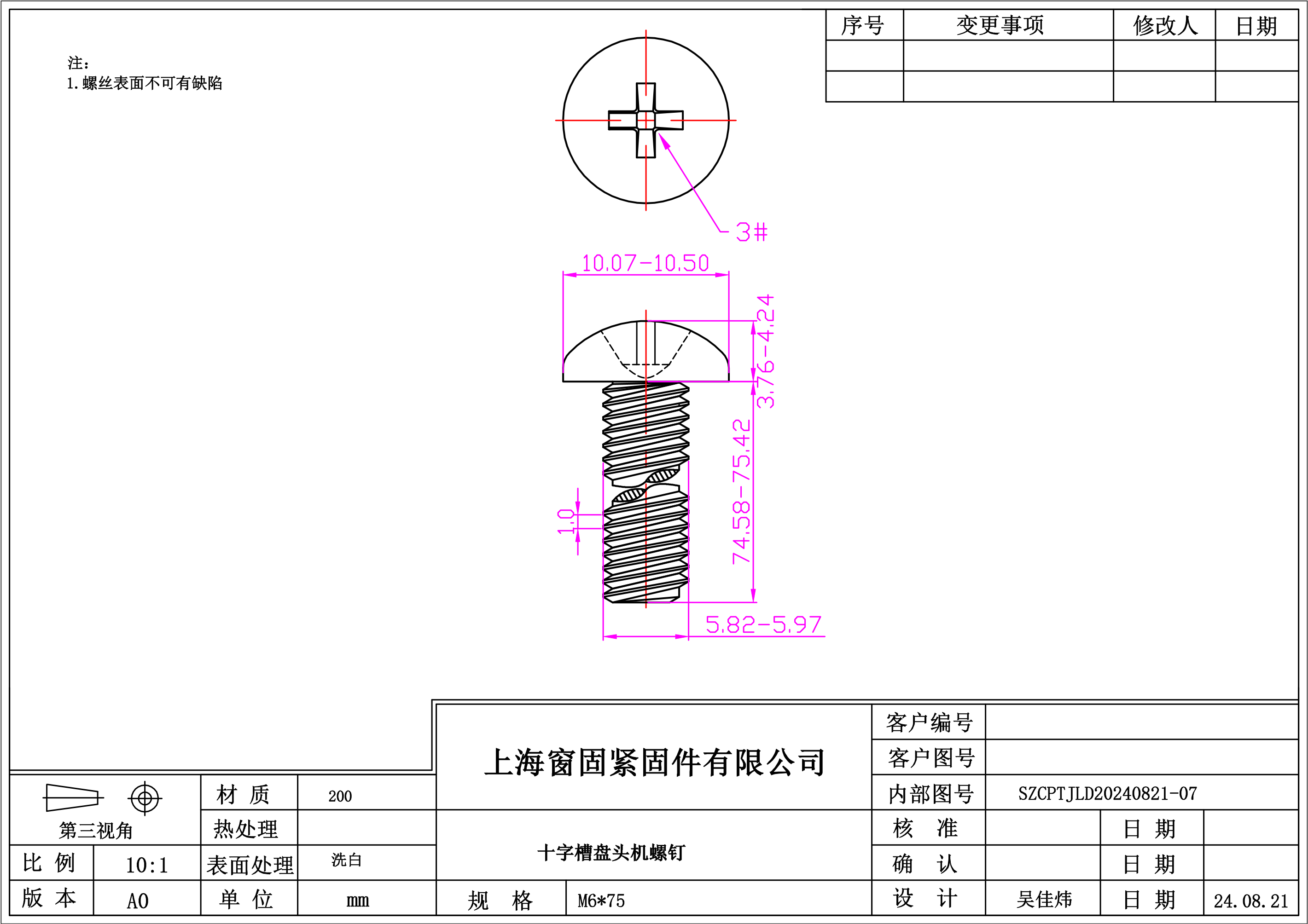 不锈钢200十字盘头机螺钉~6*75~洗白