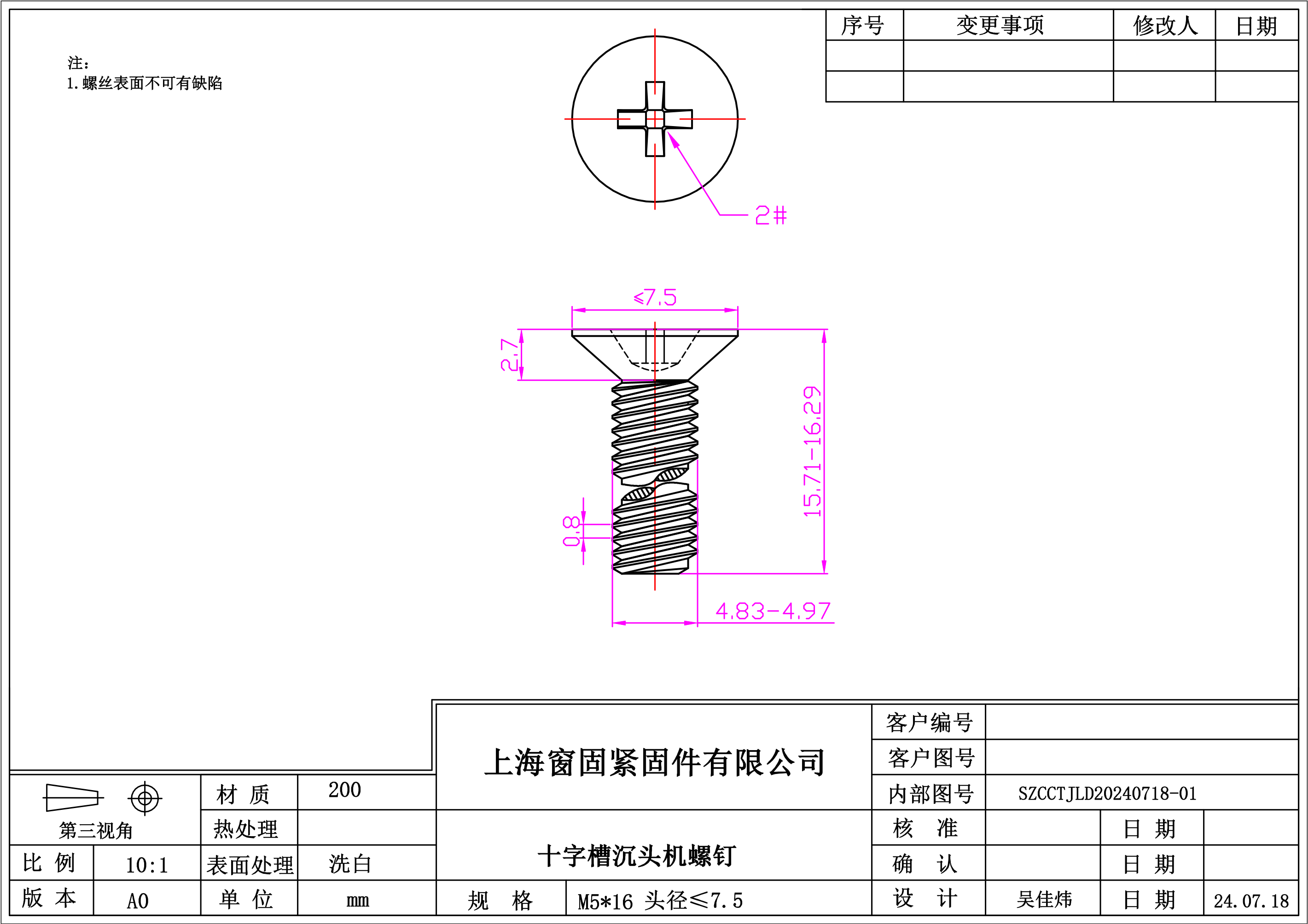 不锈钢200十字平头机螺钉~5*16~洗白~(头径≤7.5)
