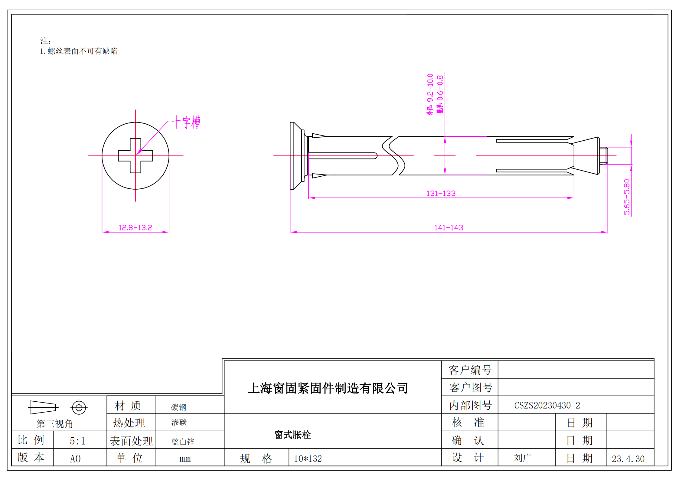 梅花沉头带筋细牙束尾自钻自攻螺钉