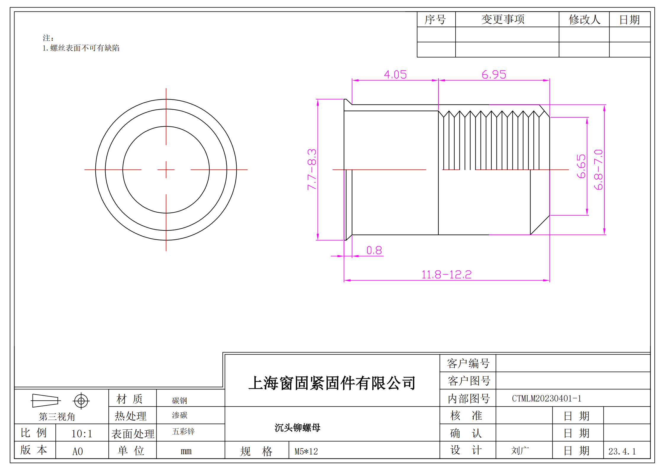 梅花沉头带筋细牙束尾自钻自攻螺钉