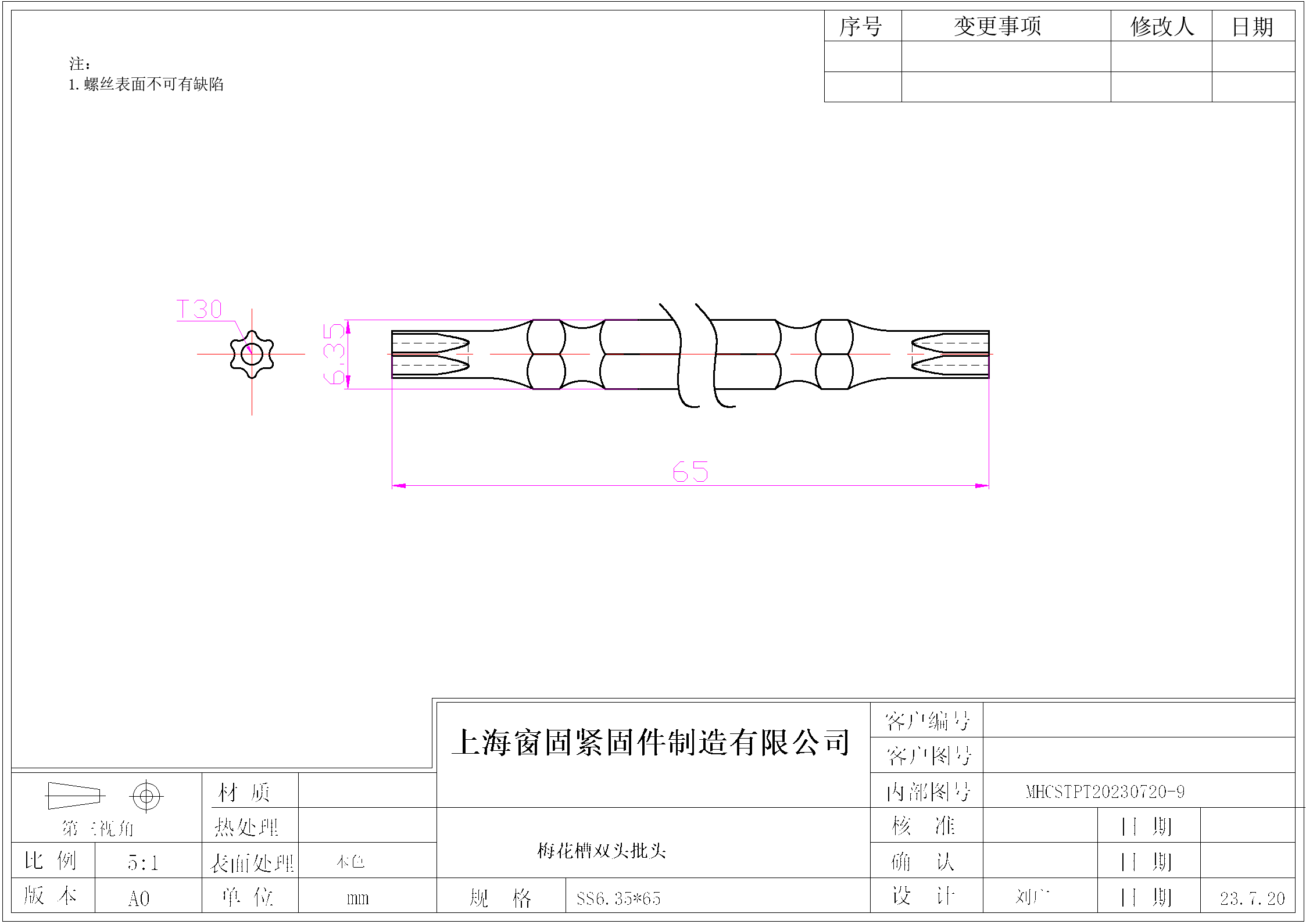 梅花双头批头~SS6.35*65~(T30)