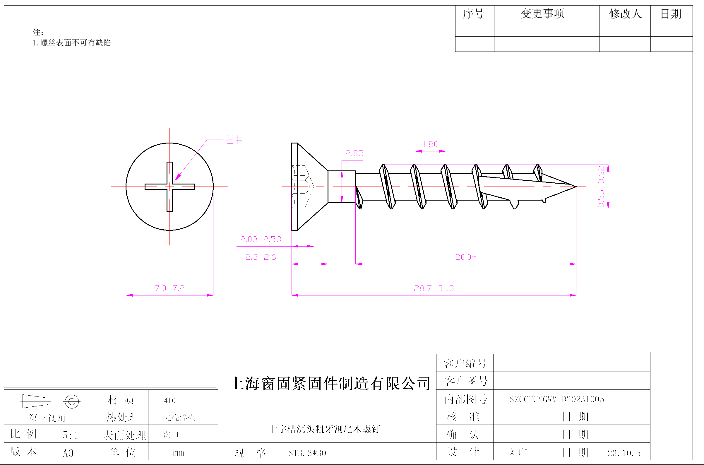 不锈钢410十字沉头粗牙割尾木螺钉~3.6*30~洗白