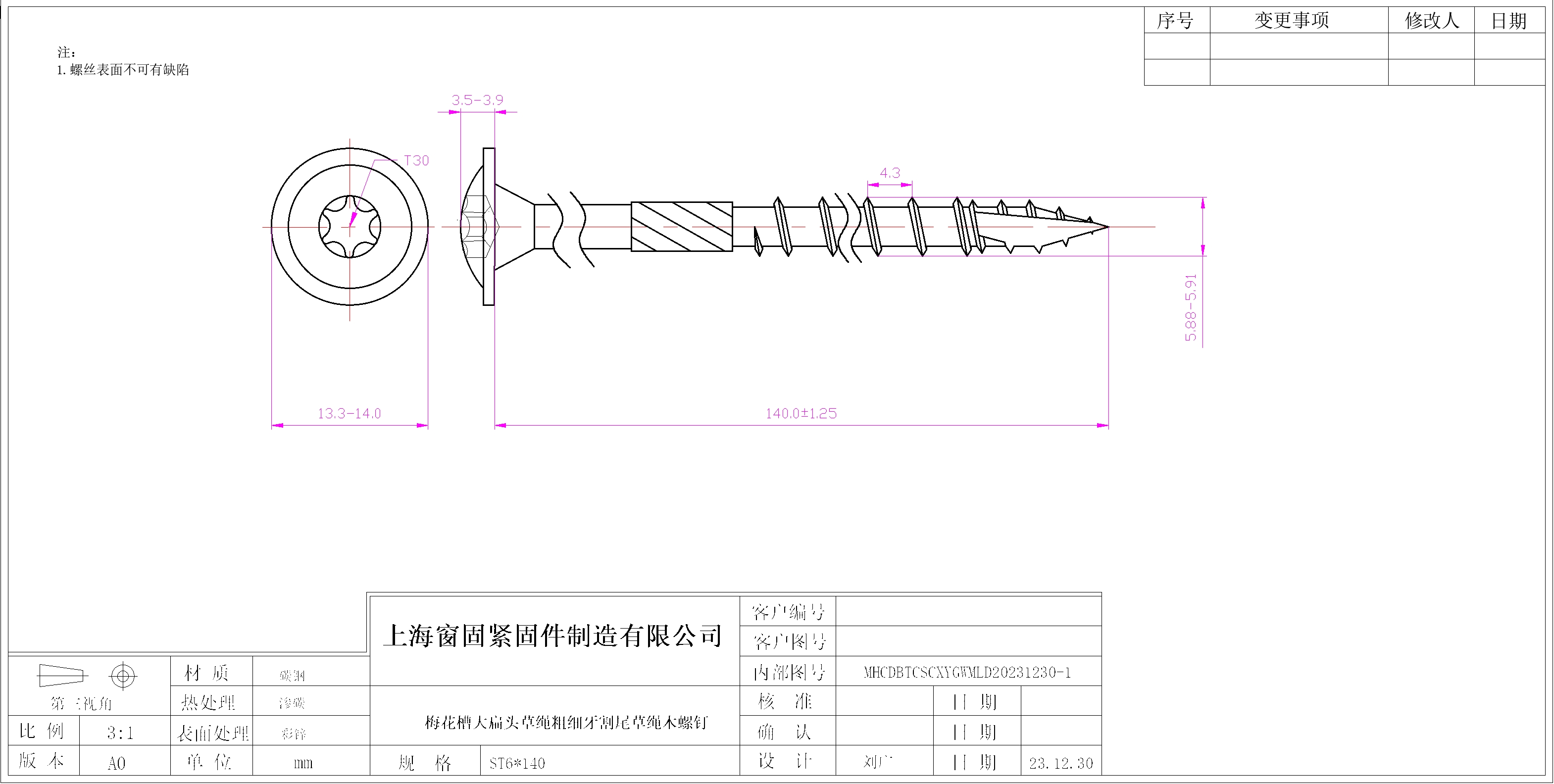 梅花沉头带筋细牙束尾自钻自攻螺钉