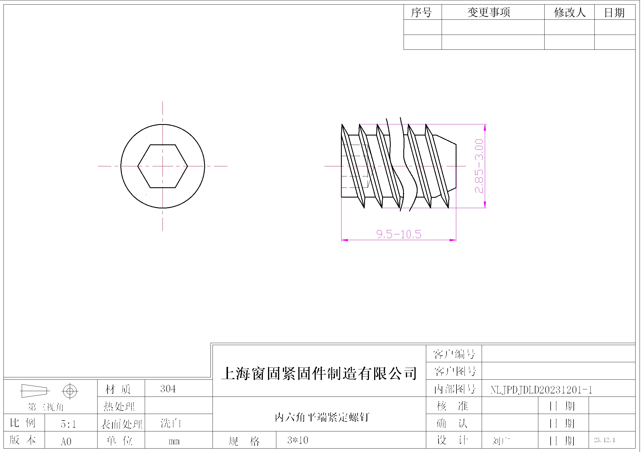 不锈钢304内六角平端紧定螺钉~3*10~洗白