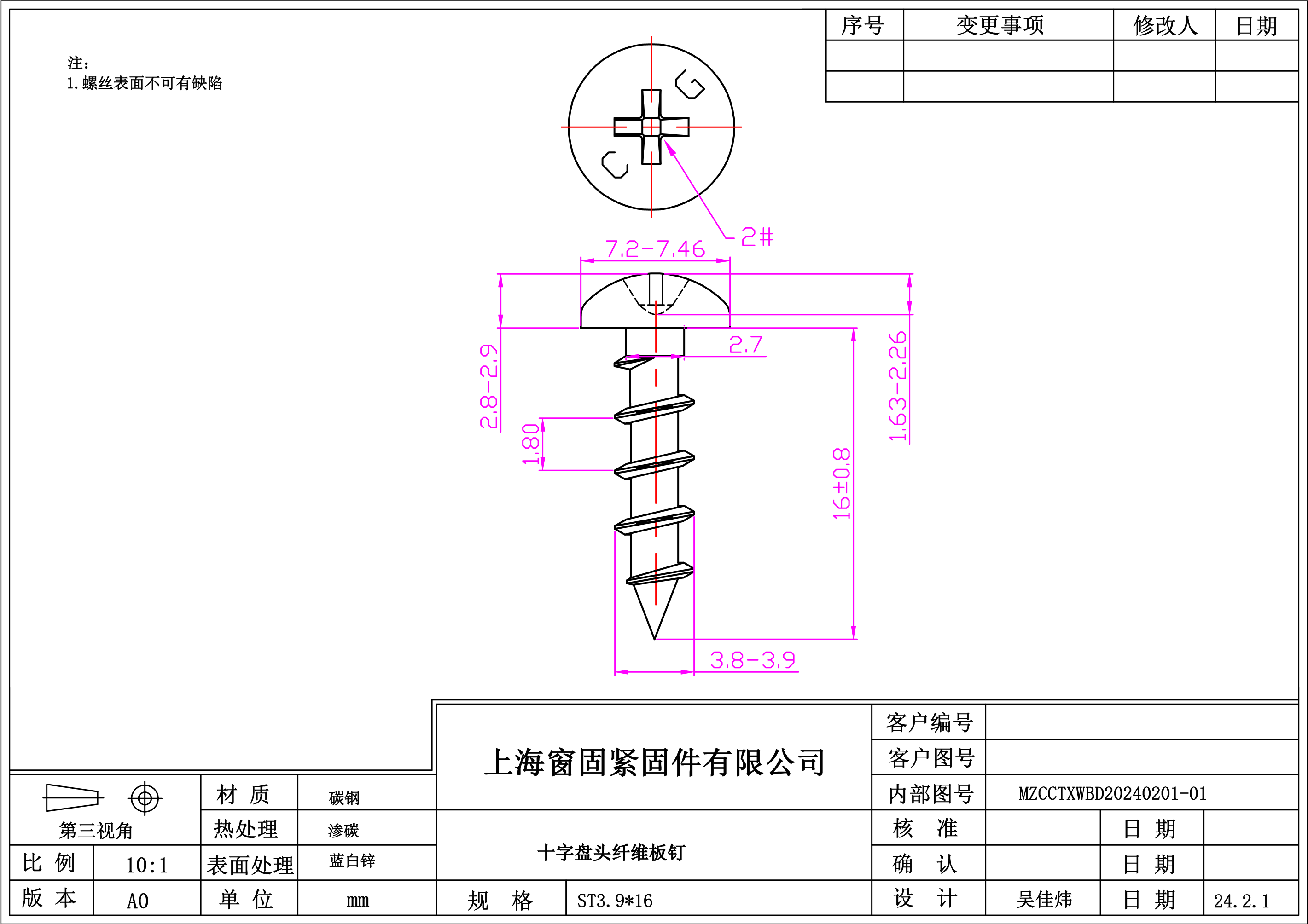 十字盘头纤维板钉~3.9*16~蓝白锌