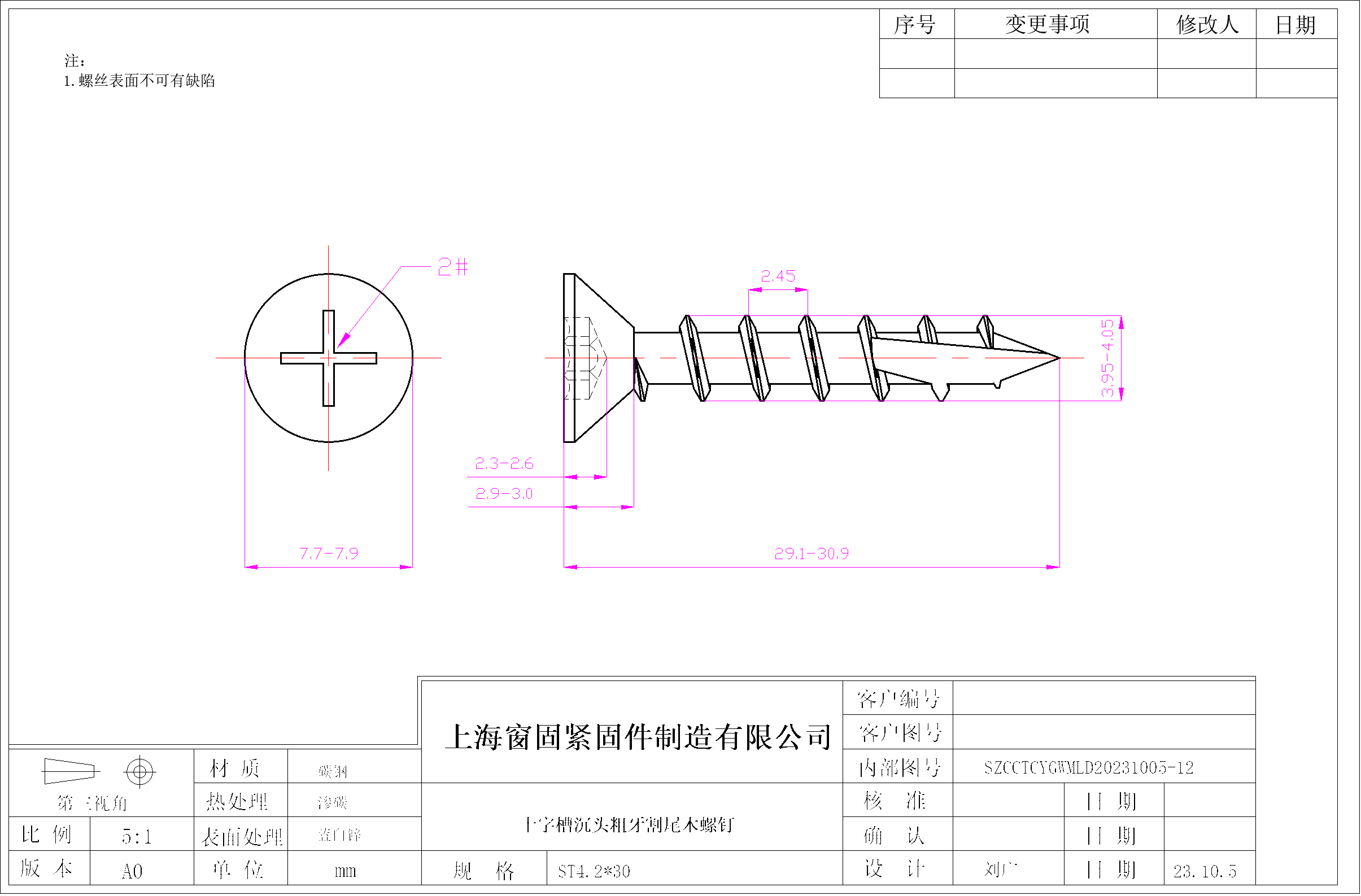 梅花沉头带筋细牙束尾自钻自攻螺钉