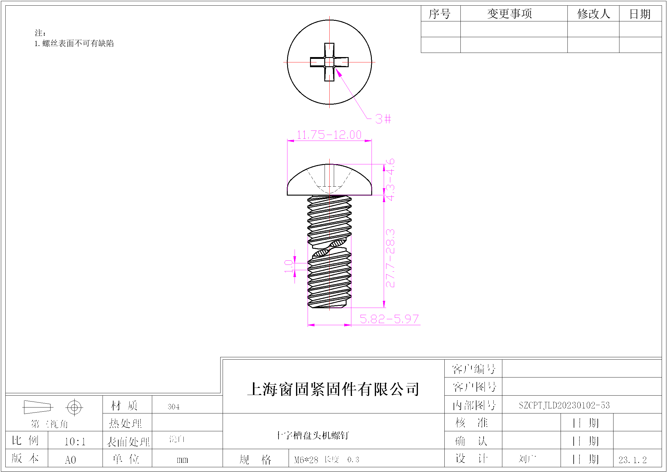 不锈钢304十字盘头机螺钉~6*28~洗白~(长度±0.3)